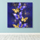 Composition des luxueux papillons saphir et bijoux en or sur arrière - plan bleu texturé.