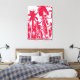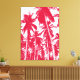 Panneau mur design tropical. Des palmiers abstraits graphiques, audacieux et impressionnants, postérifiés. Rouge et blanc.