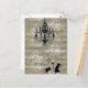 Toile background overlaid with music sheet and cameo's of a chandelier and Critters in the corner. Mouse Dragonfly and cricket.