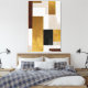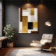 Composition géométrique de cubes dorés et bruns qui se croisent parfaitement. L'art minimaliste et élégant reflète richesse et sophistication, ce qui en fait une pièce d'art parfaite pour les environnements modernes.