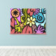Cubisme Abstrait moderne Art de la toile murale. L'art moderne multicolore souligné en noir comprend des images abstraites de fleurs, visage, oeil, rayures, rouleaux, en blues, verts, violets, jaune, rose poussiéreux et rouille. C'est le facteur de la déco. Personnalisez-le en choisissant Tuile Cette image et en agrandissant ou en réduisant les images. Vous pouvez également ajouter du texte et des images de votre propre.