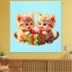 Toile **Cute Kittens Fighting Over a Gift – Funny Christ
