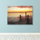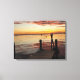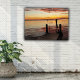 Toile de dauphins couché de soleil Imprimer. Une paire de dauphins nageant près d'un quai lors d'un coucher de soleil romantique. Impression De Toile Plus Épaisse.
