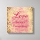 style vintage, citation d'amour imprimé toile enveloppé. Cette toile enveloppée présente un motif damassé de style vintage (tendance en ce moment !) aux accents romantiques et la citation qui dit, l'amour change tout.