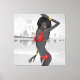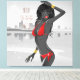 Belle fille dans son bikini rouge vif et glacé avec ses bijoux en or - elle se trouve devant un skyline ville peut-être la Riviera? - - Ce serait une grande publicité dans une boutique - de style contemporain et amusant à regarder - Parfait pour le bureau, la maison ou le lobby. Peut facilement être dimensionné vers le bas -