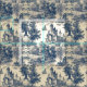 Toile de Jouy Blue Castle on Aged Ivory Fabric