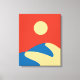 Mid Century Sahara Desert, Mod Wall Art, Sun Canvas Art pour votre décoration de maison de couleur rouge et bleue.