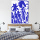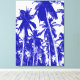 Photographie de palmiers tropicaux. Des palmiers abstraits graphiques, audacieux et impressionnants, postérifiés. Bleu et blanc.