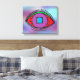 Il s'agit d'une toile enveloppée très cool avec un dessin abstrait coloré en rouge, violet et bleu sur un arrière - plan violet et aqua. Fera une belle idée cadeau pour un ophtalmologiste ou un optométriste!