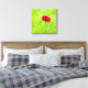 Deux tulipes rouges contre l'arrière - plan vert et quelques fleurs sauvages jaunes. Impression de toile pour le mur de la maison ou du bureau.