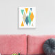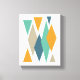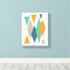 Cette toile enveloppée moderne du milieu du siècle présente des diamants et des triangles dans des couleurs amusantes de bleu turquoise et orange. Votre maison mérite d'ajouter cette pop de couleur unique à ses murs.