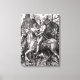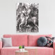 Albrecht Durer Knight Death and the Devil. Gravure sur bois de 1513. Knight Death and Devil, l’une des gravures les plus célèbres de l’artiste de la Renaissance du Nord Albrecht Durer, est une oeuvre allégorique mettant en vedette un chevalier du Nord de l’Europe en pleine armure sur un cheval flanqué par Death, qui tient un verre d’une heure, et le diable sous forme de chèvre. L'oeuvre représente la lutte chrétienne contre le temps et la tentation. Un grand cadeau pour les amateurs d'Albrecht Durer, d'art de la Renaissance du Nord, de gravures de bois, de chevaliers et de représentations médiévales.