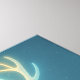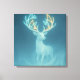 A white, almost transparent deer emerges from an icy blue haze. Its antlers are made of geometric light.