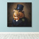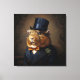 Cette image présente un cobaye vêtu d'une tenue édouardienne traditionnelle. Le cobaye est orné d'un chapeau noir et d'un manteau foncé sur mesure avec un revers, accentué par une boutonnière. Sous le manteau, il semble porter une chemise complétée par une cravate arc de couleur claire. Le sujet est posé sur un fond marron texturé qui imite le style de la photographie de portrait classique du début du XXe siècle, invoquant la mode et le style de portrait formel de l'ère édouardienne.