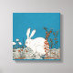C'est une illustration vintage d'un lapin blanc. Il est assis dans un coin d'herbe et de fleurs. Elégante palette de couleurs bleu, gris et orange. Amateurs d'animaux et de vintages. Voir mon magasin Art by MAR pour apparier les produits avec ce design.