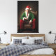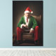 Photo d'un portrait de Donald Trump assis sur une chaise en cuir marron portant un costume d'elfe de Noël