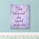 Elle croyait qu'elle le pouvait, elle a fait Citer des toiles imprime un arrière - plan damassé violet Vintage avec une police violet foncé de cool. (peut être customisé avec votre couleur préférée; il suffit de cliquer sur customiser ce bouton pour changer) Citations motivationnelles pour les femmes et les filles.