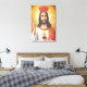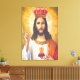 Jésus King Wrapped Canvas a Jésus avec ses bras en l'air et une couronne rouge et il a une tenue rouge orange et blanche avec un coeur et croix sur la poitrine.Ceci est une photo vintage du début des années 1900