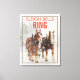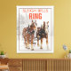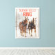 Un imprimé de toile avec le dicton : Sleigh cloches ring. Conçu avec une photographie extérieure avec une équipe de 2 chevaux belges tirant un traîneau. Des flocons de neige tombent doucement avec des pins enneigés dans l'arrière - plan.