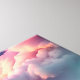 Une représentation fantaisiste d'un volcan qui explose avec de la fumée rose douce sur fond de nuages blancs moelleux. Cette oeuvre unique apportera une touche de fantaisie et d'émerveillement à n'importe quelle pièce.