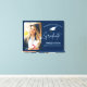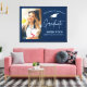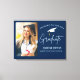 Panneau photo moderne avec lettrage blanc en gras avec un arrière - plan de la Marine. Le design comporte une casquette blanche avec l'expression "Félicitations à notre diplômé". Personnalisez le panneau orange de graduation en ajoutant le nom du diplômé, le nom de l'école et l'année de graduation. Pour un look plus personnalisé, changez l'arrière - plan en couleurs de votre école. L'affiche de fin d'études est parfaite pour votre fête de fin d'études secondaires ou collégiales !