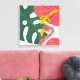 Toile Feuille tropicale, fleurs et Flamant rose d'Hibisc