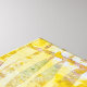 Gelli a imprimé de l'art abstrait au pochoir jaune avec des touches de violet. Cette conception a été créée à l'aide de la technique de la plaque de gelée. Oeuvre d'art et photographie par Sandra Foster Designs ©.
