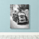 Impression en toile d'une vintage vieille petite voiture FIAT 500 dans une rue d'une ville en Italie en noir et blanc élégant.