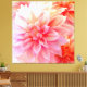 Un harmonieux mélange de couleurs et d'élégance avec de grandes fleurs de dahlia vibrantes et un arrière - plan rose pêche doux.