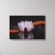 Une fleur de lotus zen blanc, en contraste saisissant avec un dramatique arrière - plan noir, reposant paisiblement sur un étang calme.