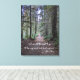 Impression de toile enveloppée représentant l'image photographique d'un sentier forestier, accompagnée d'une citation inspirante du naturaliste John Muir qui dit : "Et dans la forêt, je vais perdre mon esprit et trouver mon âme." Customisez la taille d'impression de votre toile selon vos besoins, ainsi que les options d'image.