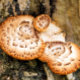 Un design photographique de champignons poussant sur un arbre.