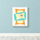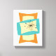 Cette toile enrobée moderne du milieu du siècle funky présente des formes rectangulaires serrées et étirées En bleu turquoise, crème et orange. Les accents Starburst en rose, bleu, or et noir mettent en valeur le design. Fab !