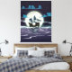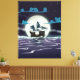 Bois Voilier voyage au clair de lune - Petit navire en bois mignon naviguant sous la lune la nuit, navire de dessin animé la nuit.