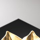 A gold brooch shaped like a stylized sunflower, featuring a central black gemstone surrounded by smaller diamonds.