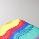 Des bandes horizontales ondulées aux couleurs vives créent une composition dynamique et vivante. Chaque bande présente une teinte unique, se mélangeant harmonieusement à la suivante, évoquant un sens du mouvement et de l'équilibre.