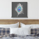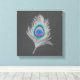 Toile enveloppée dans un dessin vectoriel d'une plume de paon, rehaussée et rendue dans un effet de crayon de conte doux - gris argenté clair / gris, avec oeil gris, turquoise et rose fuchsia, sur un arrière - plan gris graphite profond