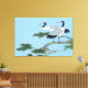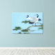 Cette Grue à Couronnes Rouges a deux grues dans un arbre avec un ciel bleu arrière sol chaque grue a une poitrine blanche et des plumes bleues grises debout sur la branche de l'arbre avec les aiguilles de pin vert et un ciel bleu clair.Ceci est une belle photo. sur cette Canva enveloppée