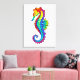Artistiquement dessiné, lumineux, arc-en-ciel, cheval de mer polygonale sur arrière - plan blanc. Un tatouage brillant.