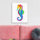 Artistiquement dessiné, lumineux, arc-en-ciel, cheval de mer polygonale sur arrière - plan blanc. Un tatouage brillant.