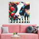 Toile Holstein Picket de vache clôture Roses rouges Noir