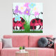 De mignons coccinelles se retrouvent entre un bouquet de fleurs colorées. C'est de l'amour au premier abord pour ces deux insectes amoureux. L'herbe verte en dessous, les fleurs sont violettes, roses et bleues avec des tiges vertes. Basé sur une oeuvre d'art originale de © One Artsy Momma.
