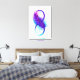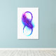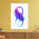 Infinity symbole with a beautiful feather painted in purple and blue bright colors on white background