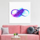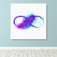Infinity symbole with a beautiful feather painted in purple and blue bright colors on white background