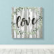 Farmhouse Inspiration I par Jennifer Paxton Parker. Caractéristiques "Love" en script avec une belle couronne verte et des panneaux en bois en détresse.