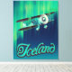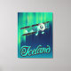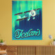 Style vintage islandais Affiche de voyage des aurores boréales et d'un avion léger passant devant.