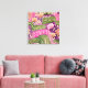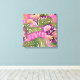 Joli décor mural. Une représentation de jardin floral avec des fleurs et de l'herbe surdimensionnées dans des tons de rose, violet, mauve.