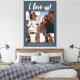 Modèle moderne bleu et blanc "I love us" brush script photo collage toile avec nom personnalisé et année.