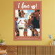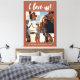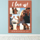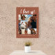 Toile moderne en terre cuite et blanc "I love us" brush script photo collage avec nom personnalisé et année.