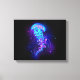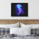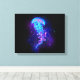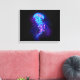Grande méduse bleue, artistiquement dessinée, brillante, brillante, avec de longues tentacules sur arrière - plan noir avec bioluminescence violette. Méduse brillante.